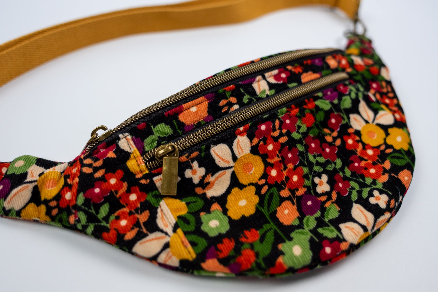 These bags come with an adjustable cotton webbing strap that allows them to be worn crossbody-style over the chest or around the waist in classic fanny pack style. The front zippered pocket is perfect for keeping your phone or other small valuables close at hand, while the main compartment is extra-spacious and can hold a small wallet and even a pair of glasses!
