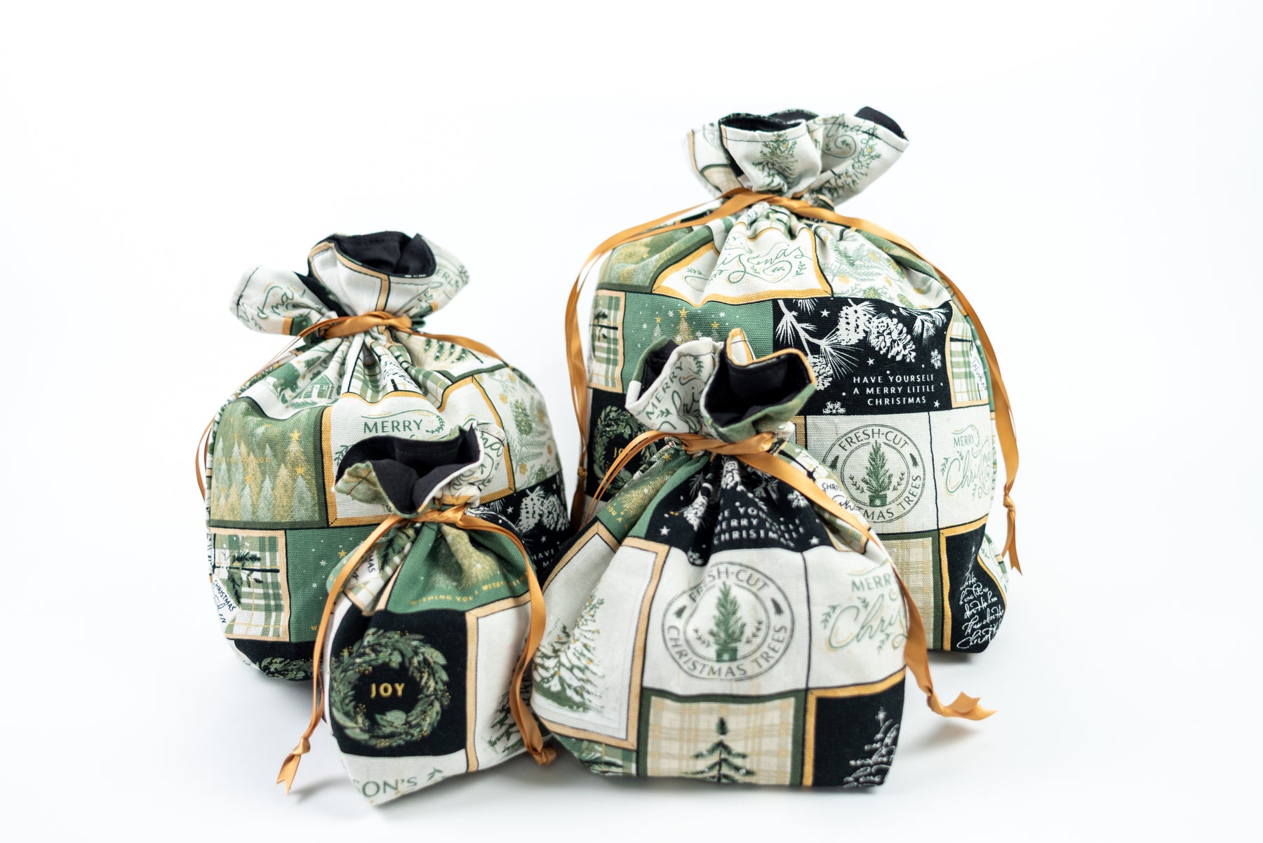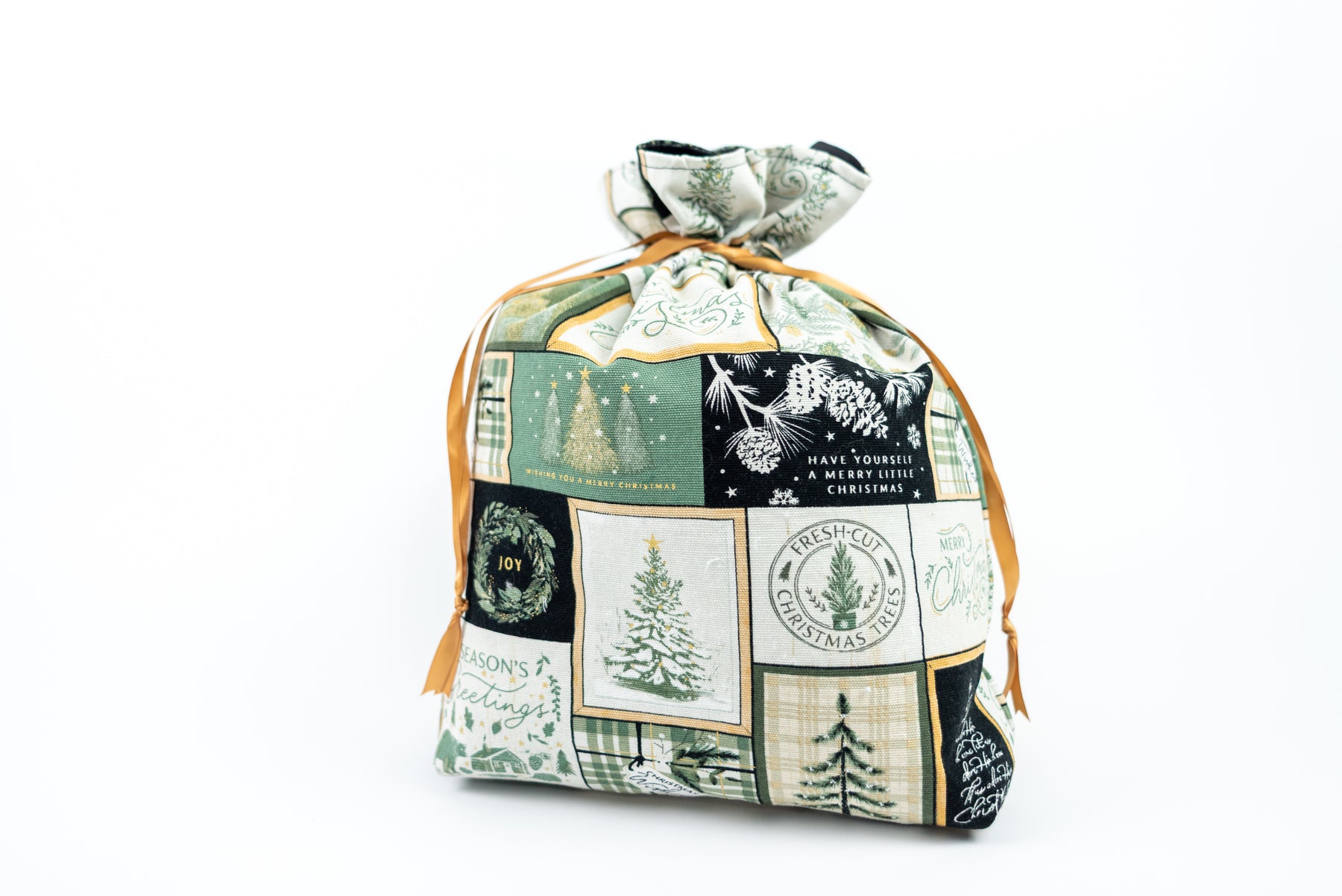 Make gift wrapping easier and more sustainable with our Christmas-themed fabric gift bags. These bags are made from high-quality cotton canvas, featuring festive prints, and are lined with coordinating cotton fabric. They are designed to be eco-friendly alternatives to traditional paper wrapping and can be reused year after year.